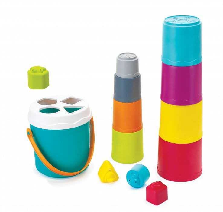 Jedną z ulubionych zabawek najmłodszych są sortery. Sorter firmy B-Kids daje naszemu maluchowi wiele możliwości nauki i rozwoju .W zestawie znajdueje 8 kubków w różnych kolorach oraz wiaderko z nakładką - sorterem z otworami, przez które można wrzucać kolorowe klocki w geometrycznych kształtach. Kolorwe kubki są w różnych rozmiar dzięki czemu można z nich ułożyć wieżę.Dodatkowo na każdym kubku i klocku znajduje się inne sympatyczne zwierzątko.