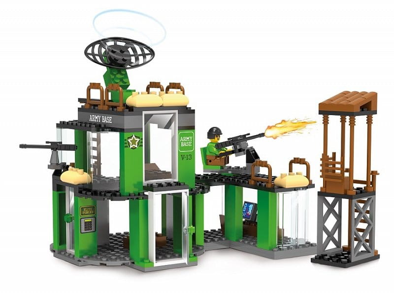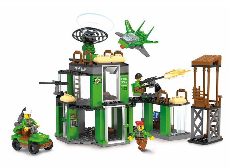 Z klocków można zbudować bazę wojskową z nadajnikiem, odrzutowcem, autem wojskowym oraz wieżą kontrolną. Zestaw zawiera trzy figurki.