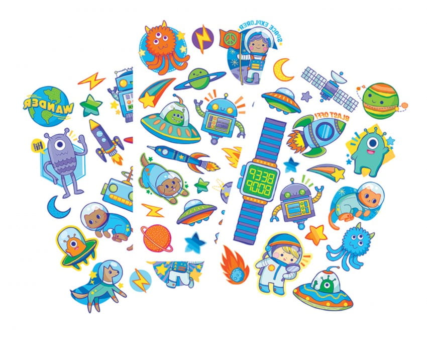 Zmywalne tatuaże marki Ooly o kosmicznej tematyce w stylu komiksowym