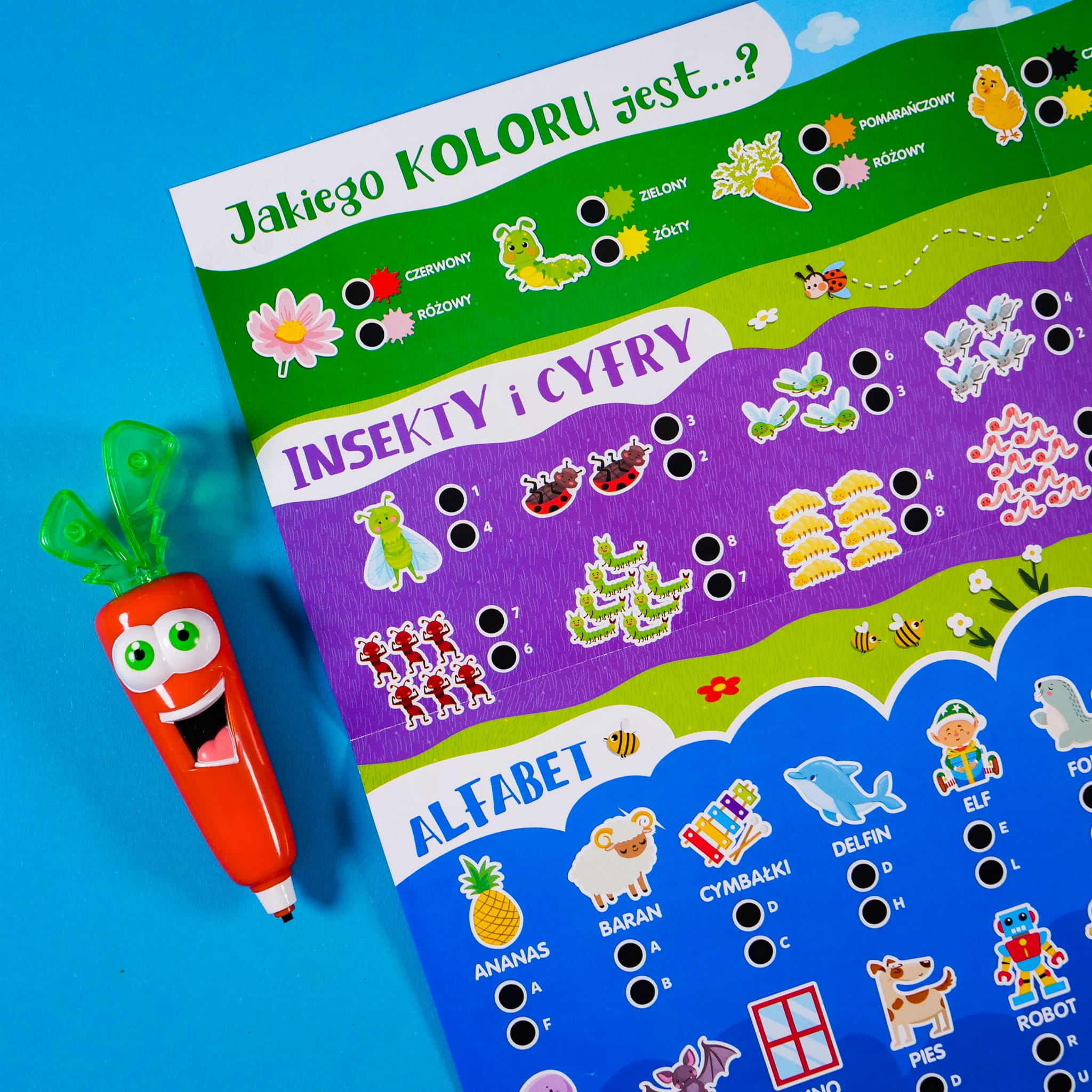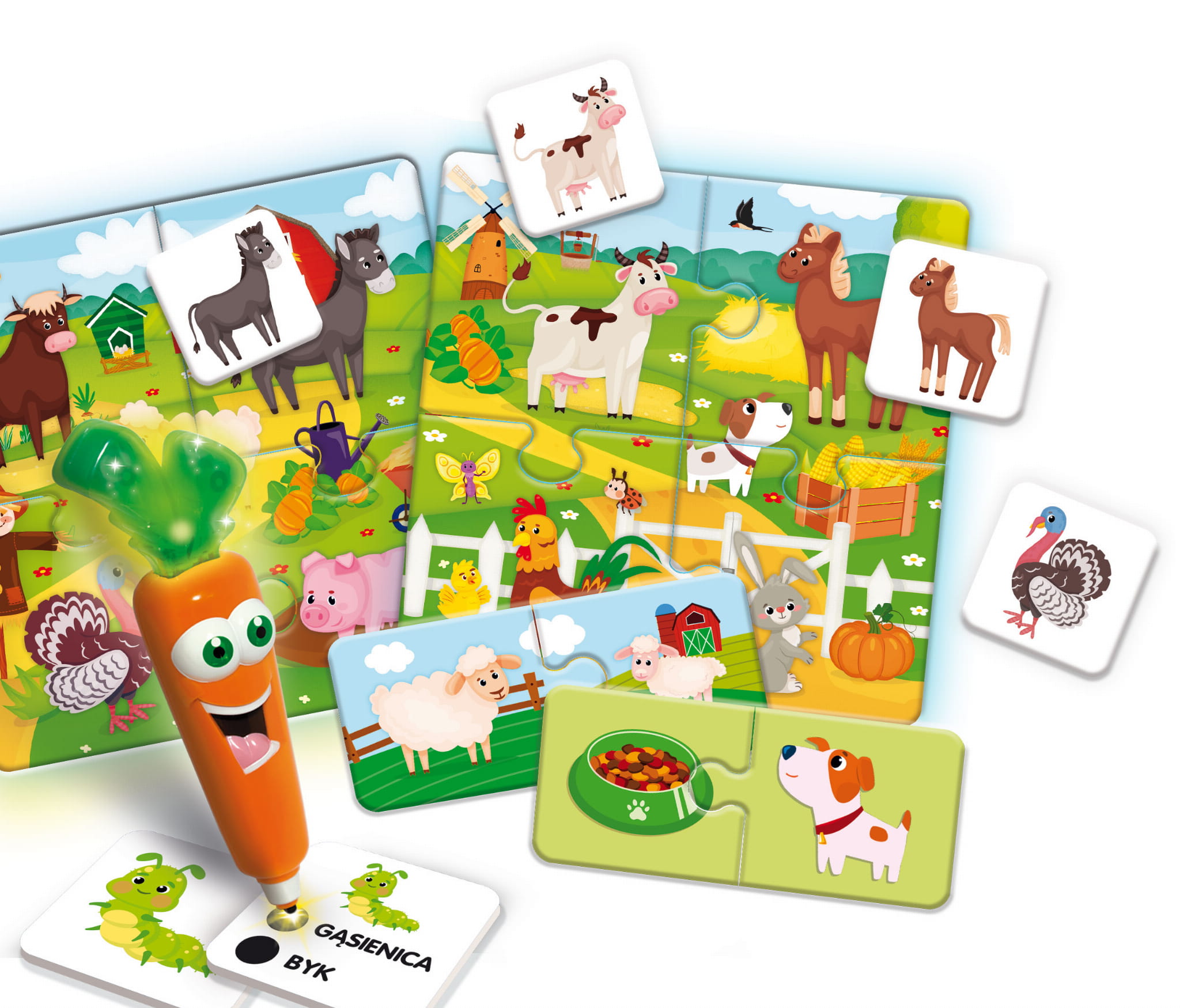 Gry te pozwalają dzieciom na naukę poprzez zabawę, wykorzystując interakcję z mówiącą i świecącą Carotiną. Dzięki naciskaniu czarnych kropek, dzieci aktywnie uczestniczą w grach edukacyjnych, rozwijając swoje umiejętności i odpowiadając na pytania. Carotina jako elektroniczna bohaterka dodaje dodatkowy element zabawy i motywacji dla dzieci.