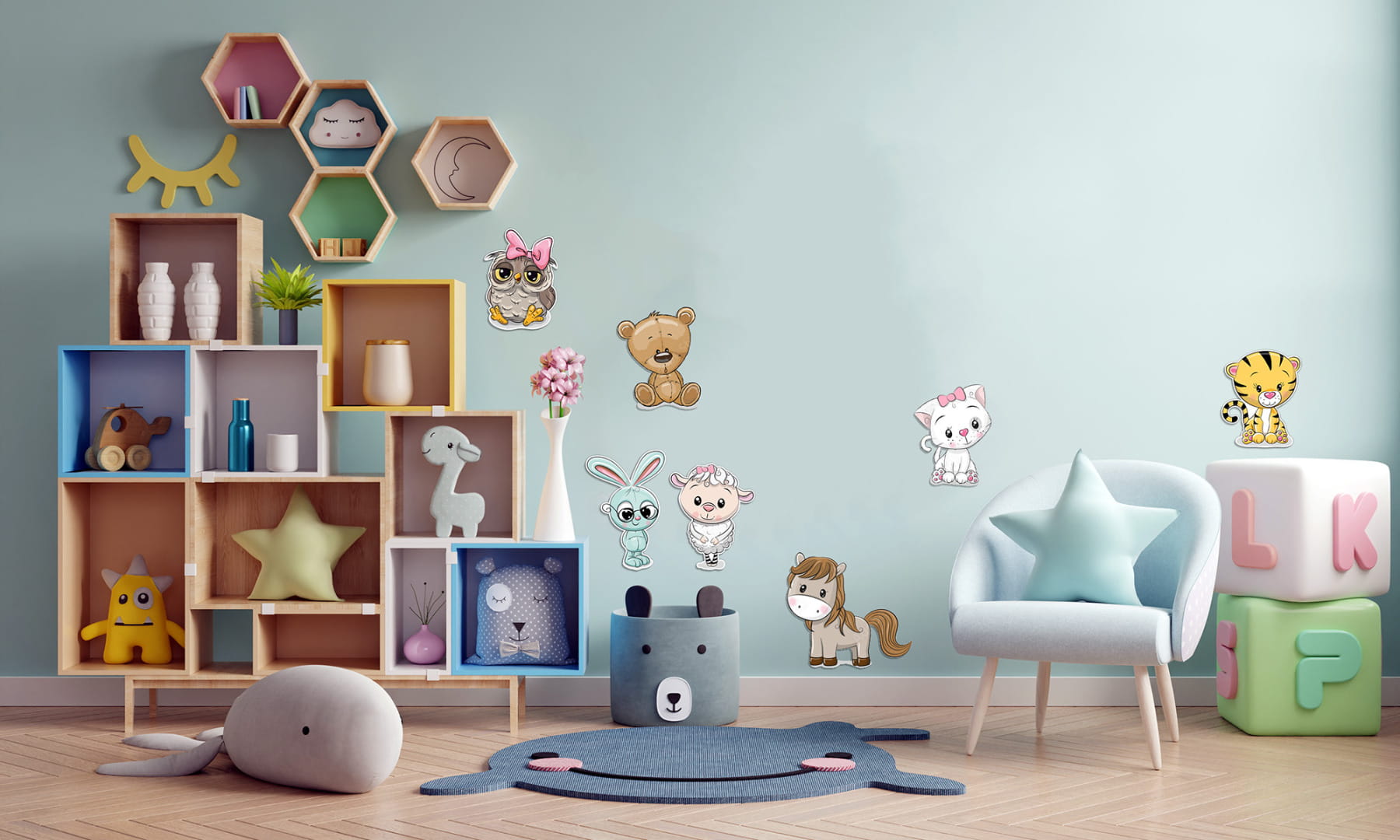 Dodaj uroku i koloru do przestrzeni Twojego dziecka z dekoracją ścienną Owieczka – prosty sposób na stworzenie magicznego miejsca do zabawy i odpoczynku.
