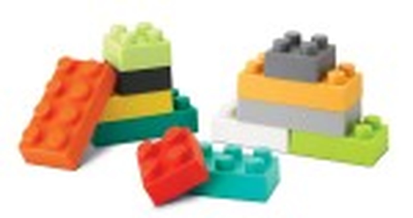 Maluszki polubią ściskanie i układanie tych klocków na różne sposoby.
