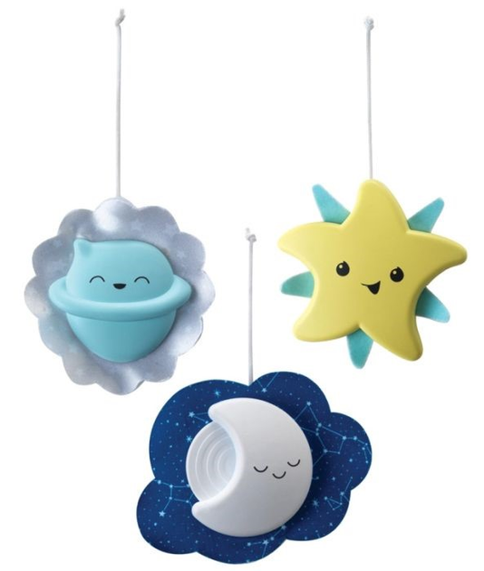 0-5 miesięcy – Karuzelka z delikatnym światłem i muzyką – przyjemne melodie, obracające się zawieszki i świetlne gwiazdki pomagają dziecku wyciszyć się i zasnąć.