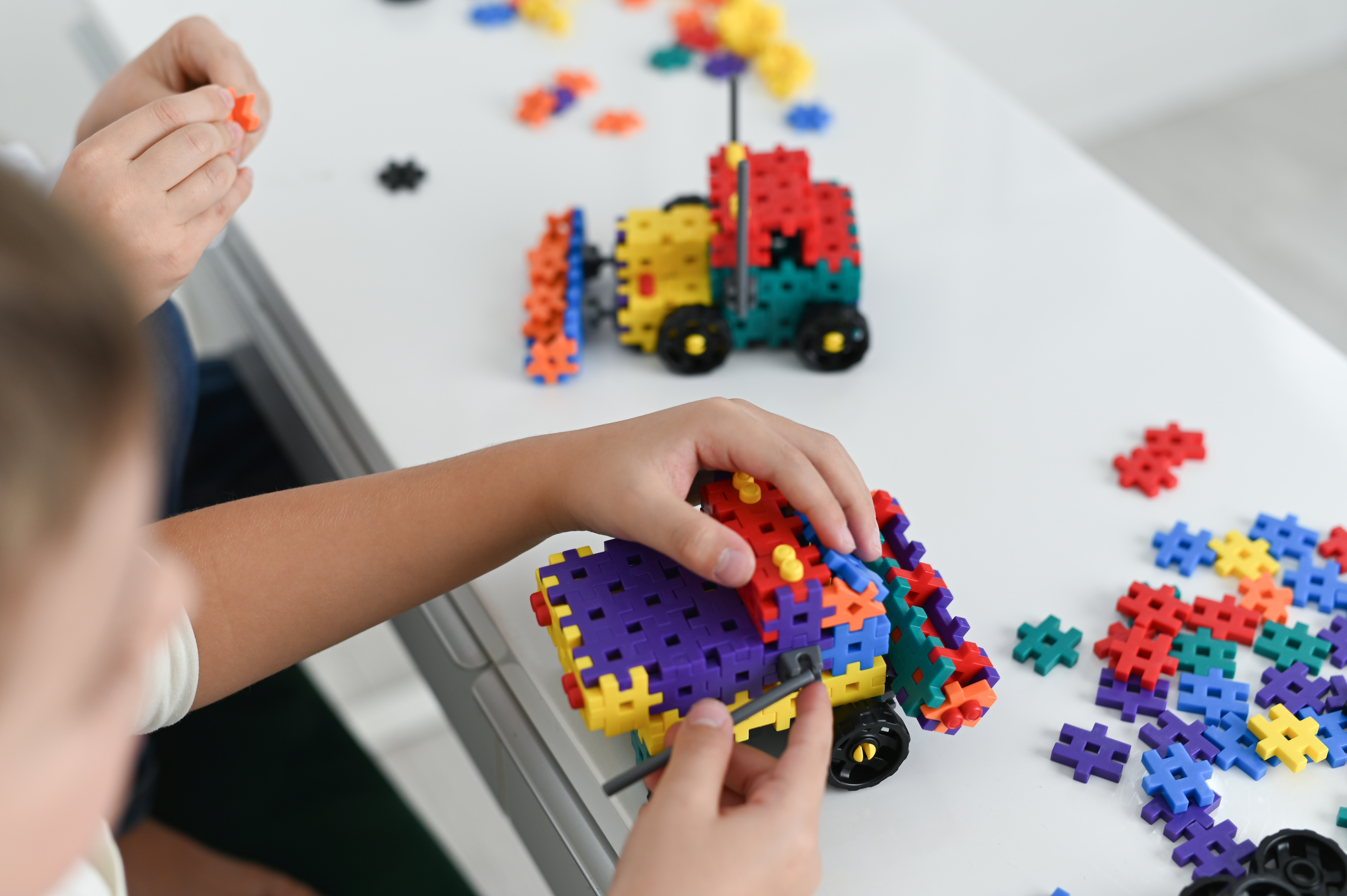 Łatwe łączenie: Specyficzny kształt klocków sprawia, że pasują do siebie idealnie bez użycia dużej siły.