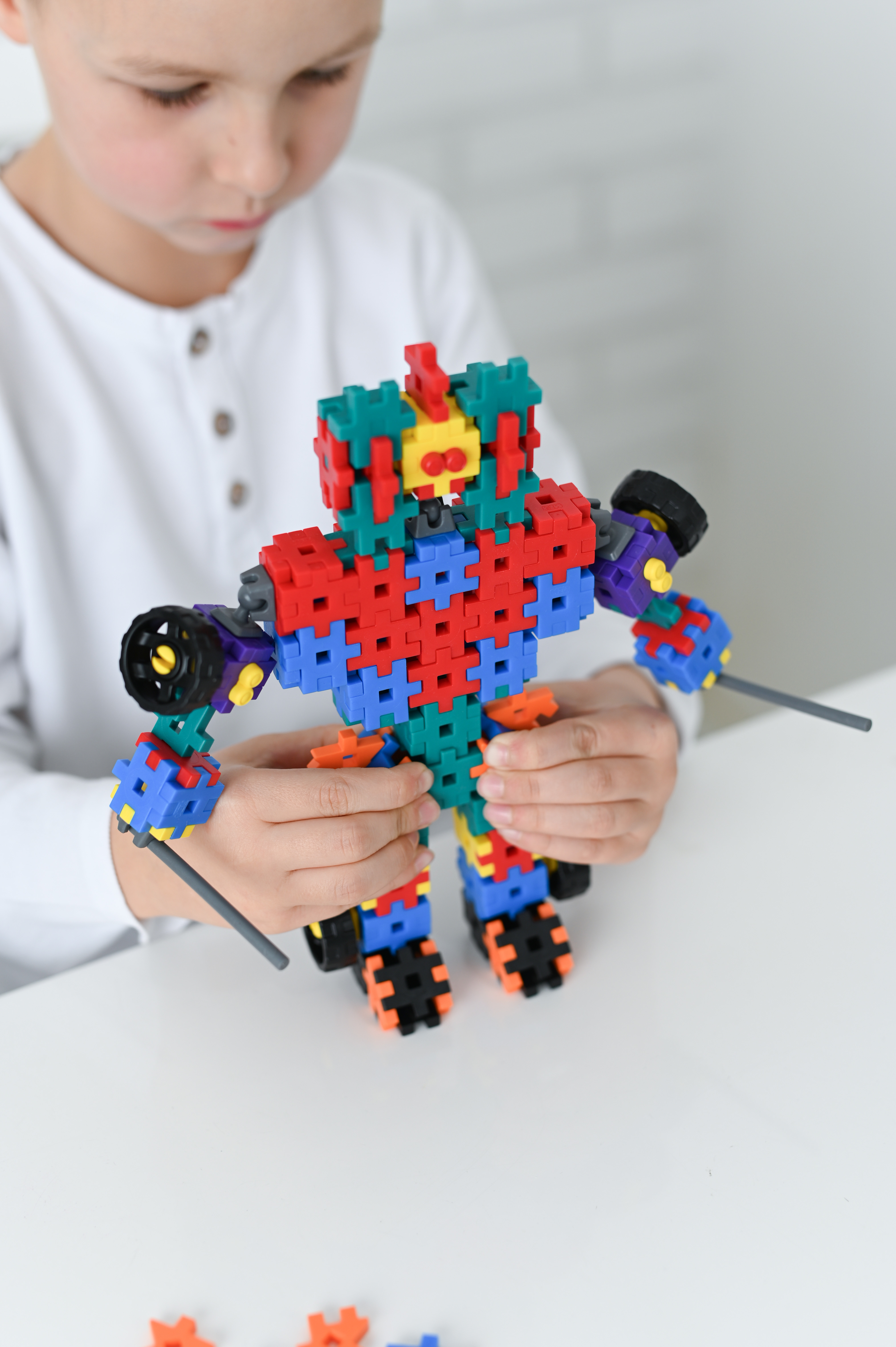 Klocki wykonano z miękkiego, bezpiecznego tworzywa, które łączy się lekko niczym puzzle. Intuicyjny system montażu sprawia, że zabawa jest płynna, a planowanie i testowanie coraz bardziej złożonych projektów staje się fascynującym zajęciem. Wszystkie elementy Tech+ są w pełni kompatybilne z serią Meli Basic, co pozwala na nieograniczoną rozbudowę kolekcji.
