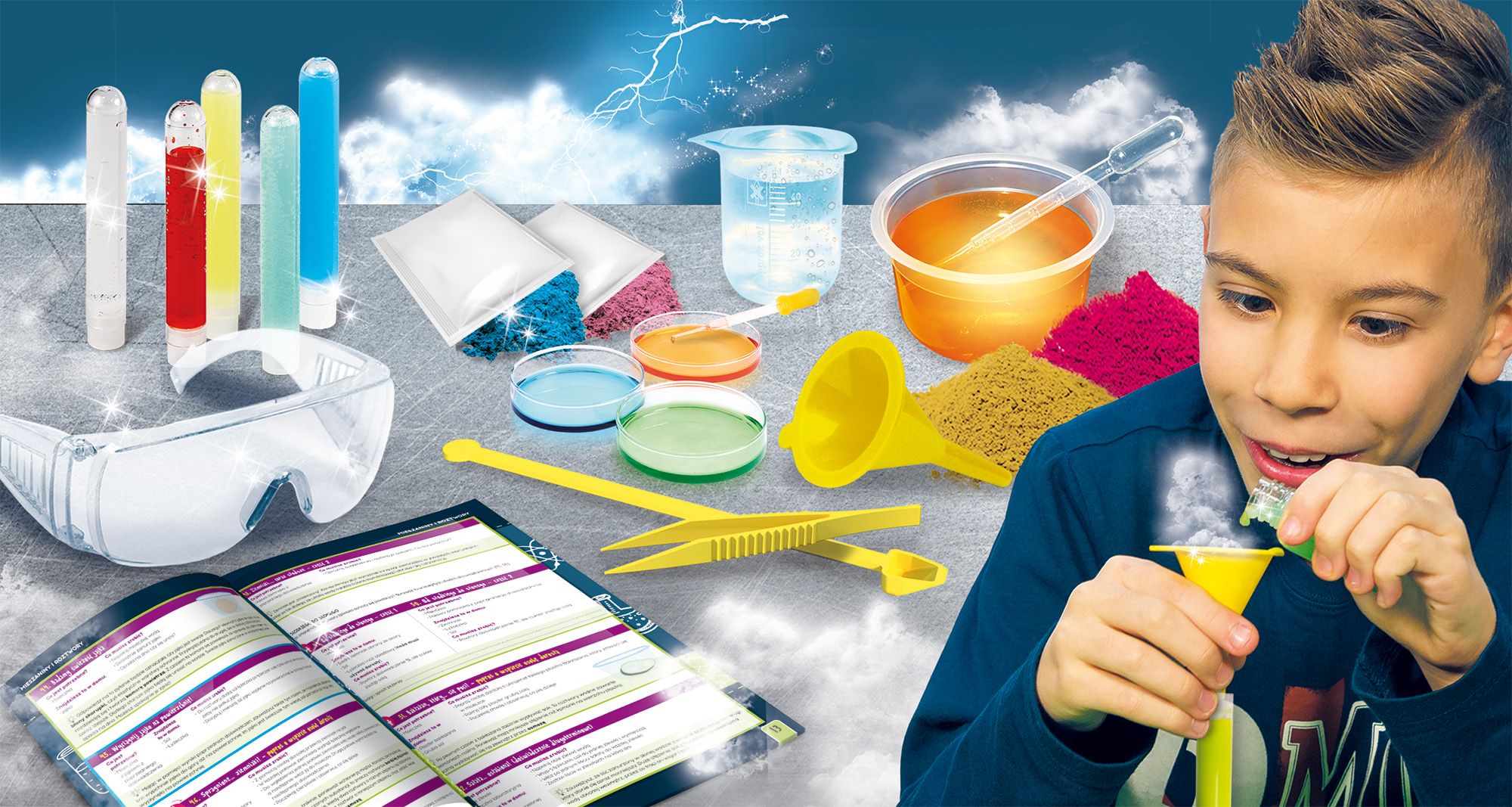 Bezpieczeństwo i Przejrzystość: Wszystkie eksperymenty są w pełni bezpieczne, a instrukcja jest tak szczegółowa i ilustrowana, że dziecko może pracować w sposób zorganizowany i bezpieczny.