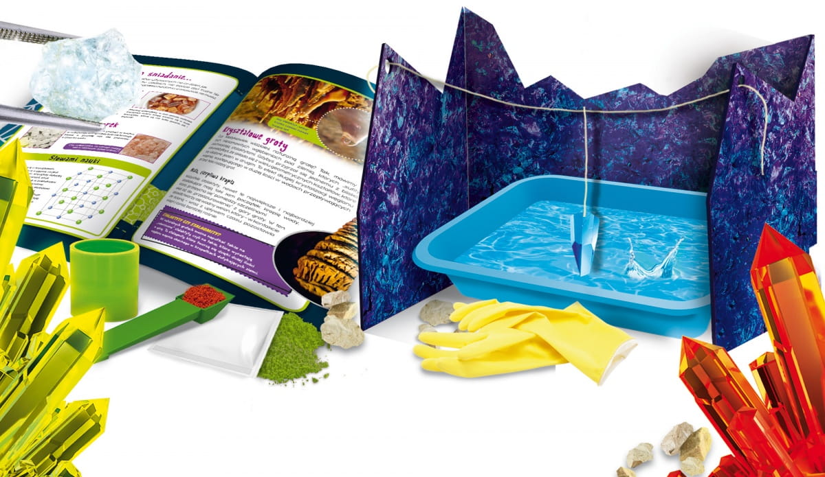 Tworzenie kryształów to świetna zabawa. Dzięki zawartości opakowania można stworzyć mini laboratorium, w którym, w łatwy i bezpieczny sposób można wytworzyć wielobarwne klejnoty. Ilustrowany podręcznik zawiera jasne instrukcje, dzięki czemu dziecko samodzielnie może przeprowadzić eksperymenty.