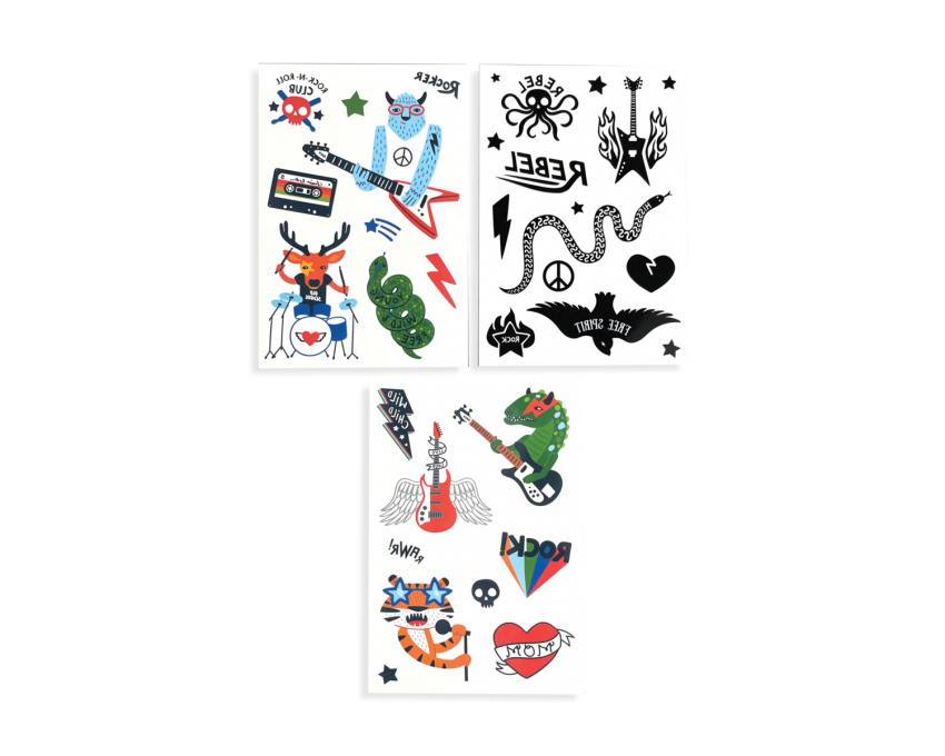 - Bezpieczeństwo: Tatuaże zaprojektowane przez uznaną artystkę, scenografkę i twórczynię zabawek, Suzy Ultman, są nietoksyczne i bezpieczne dla dzieci w wieku 3 lat i starszych.