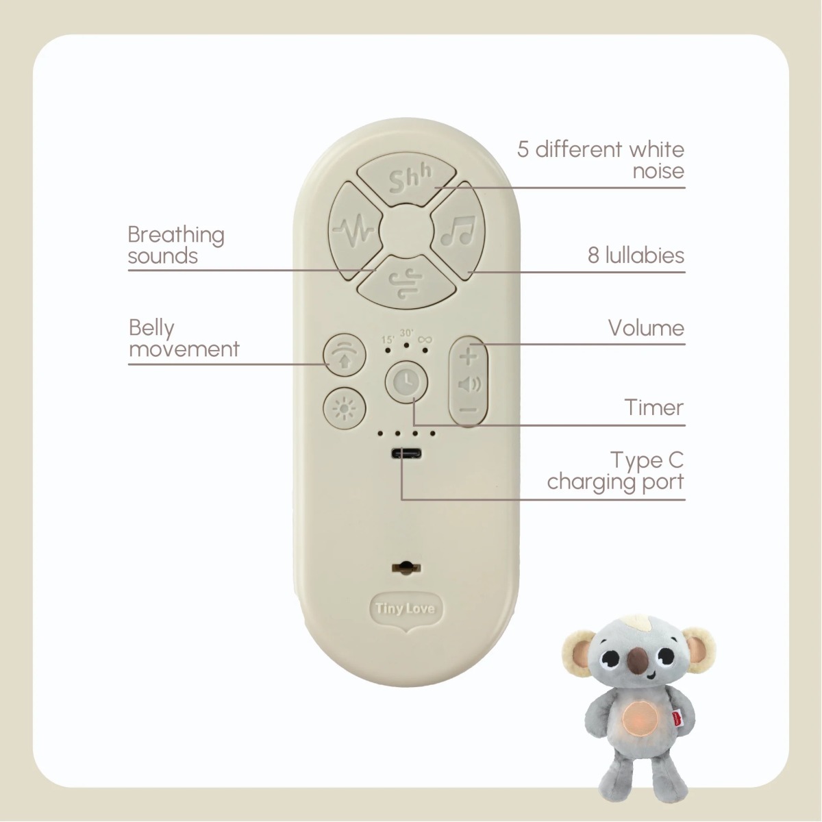Koala został zaprojektowany tak, aby wspierać dziecko w adaptacji do świata poza brzuchem mamy. Rytmiczny ruch oddechowy oraz dźwięki przypominające znane z okresu prenatalnego pomagają maluchowi się uspokoić i łatwiej zasnąć. To idealne rozwiązanie dla rodziców, którzy chcą stworzyć spokojną i przewidywalną rutynę snu.