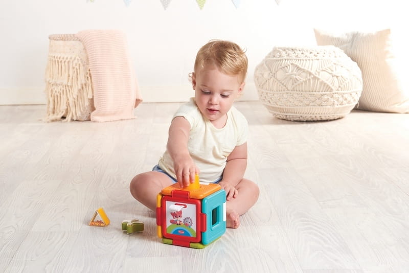 Produkt ten to 2 zabawki must-have dla dziecka w jednym - sorter kształtów i układanka, która również zapewnia zabawę w puzzle. Zawiera 7 zabawnych cech i dźwięków. Każdą ścianę sortera można wyginać, by móc stworzyć wyjątkowe konstrukcje. Podczas zmiany ustawienia każdej ze ścian słychać odgłos klikania, co jeszcze bardziej zachęca dziecko do zabawy.