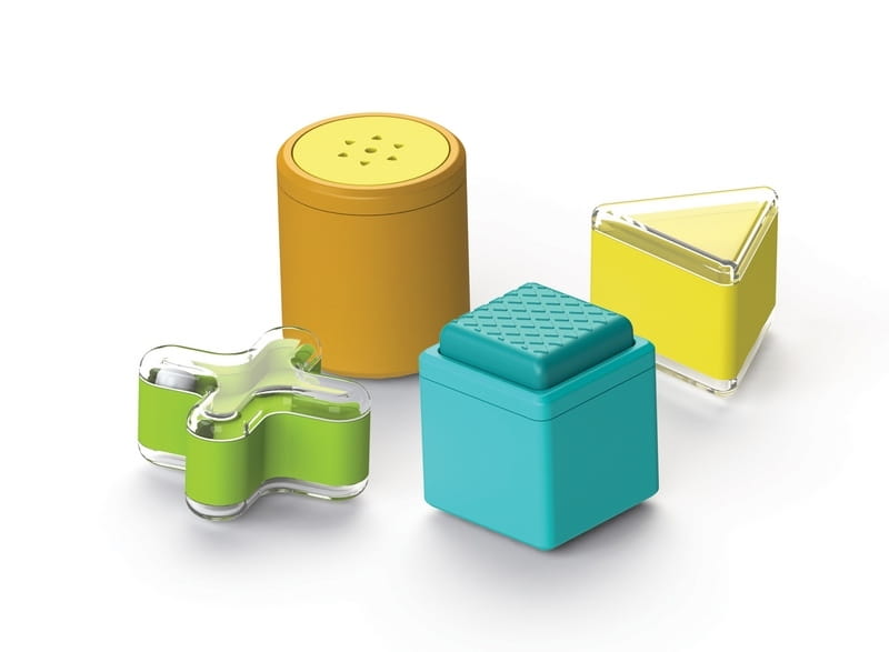 - 4 zabawne kształty - 2 grzechotki, piszczek do naciskania, shaker-piszczek