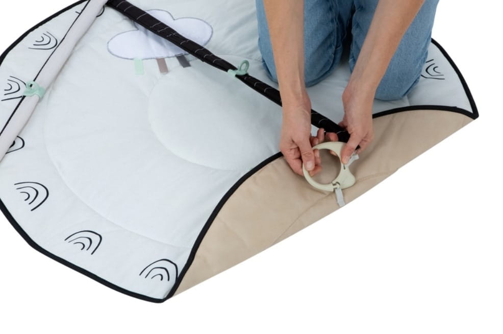 Tryby Użytkowania: Mata oferuje różne tryby użytkowania, takie jak leżenie, czas na brzuszku, siedzenie i zabawa. Pałąki można łatwo przesunąć, zmieniając tryb.