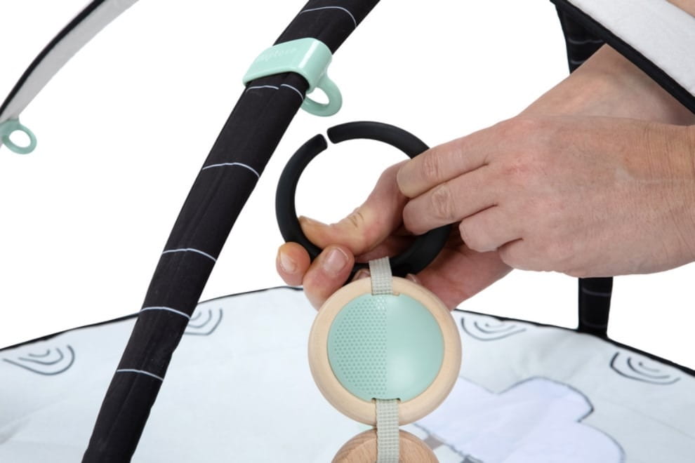 Regulowane Pałąki: Pałąki z zawieszkami są regulowane, co pozwala dostosować ich ułożenie do potrzeb rozwojowych dziecka. To umożliwia dziecku leżenie na brzuszku, mieć zabawki blisko rączek, a nawet bawić się z rodzicami.