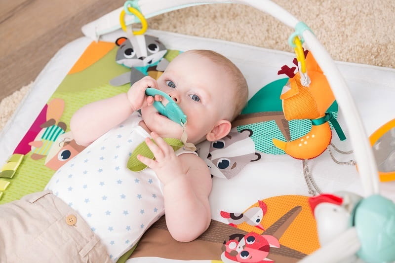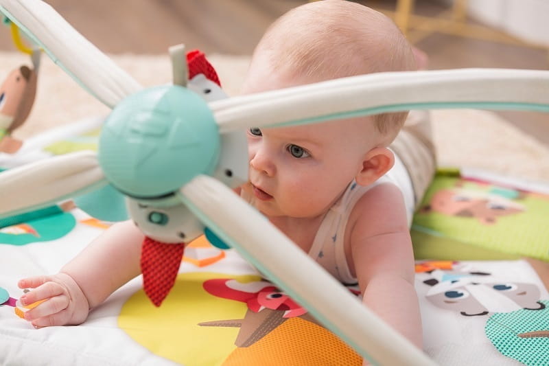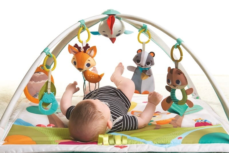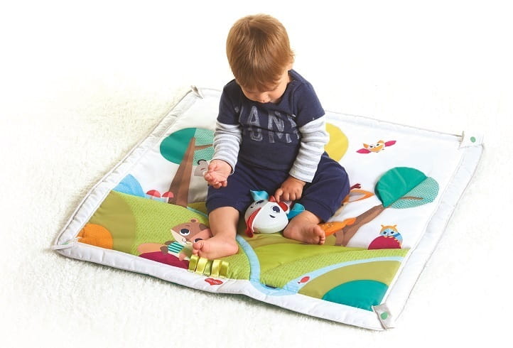 Kolory, faktury i dźwięki stymulują zmysły dziecka już od pierwszych dni. Wspaniały zbiór zabawek zainspiruje Twojego Maluszka do leżenia na brzuszku i sięgania po zabawki, dzięki czemu ćwiczy umiejętności motoryczne. Dziecko może również oglądać swoje własne odbicie w lusterku wydłużając czas na brzuszku.