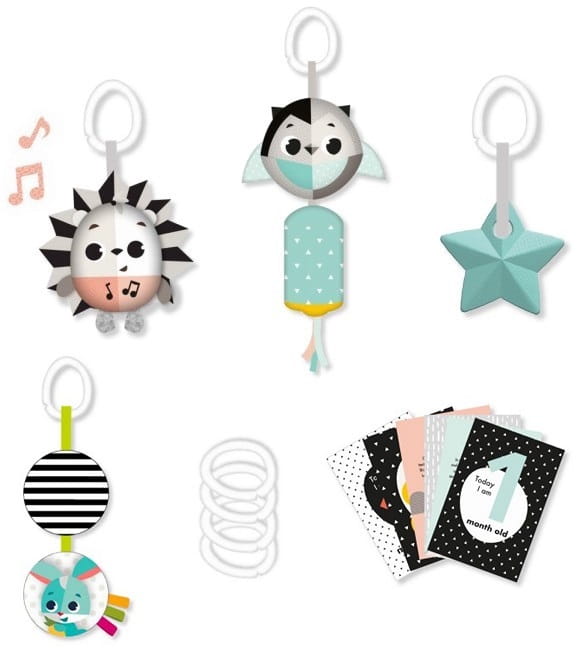 W zestawie znajdziesz nie tylko zabawki do wózka, ale także do fotelika samochodowego.