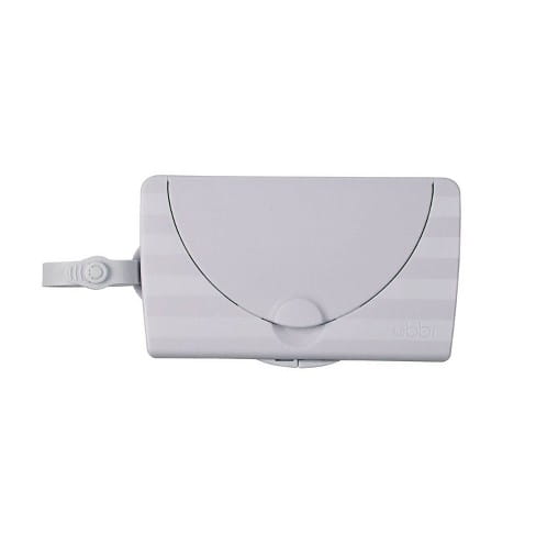 Pojemnik na mokre chusteczki firmy Ubbi. Pomocnik każdego rodzica na spacerze jak i w domu. Od teraz mokre chusteczki, które są potrzebne przy dziecku, będziesz mieć zawsze przy sobie bez obaw, że je zgubisz. Wystarczy przy pomocy silikonowego paska przypiąć go do wózka lub torby, by mieć go na wyciągnięcie dłoni podczas spaceru lub wizyty u przyjaciół czy w restauracji. Pojemnik na mokre chusteczki z łatwością zmieści się też w torbie lub worku z matą do przewijania. Podręczny pojemnik pasuje do większości dostępnych na rynku mokrych chusteczek. W środku mieści ok. 22 szt